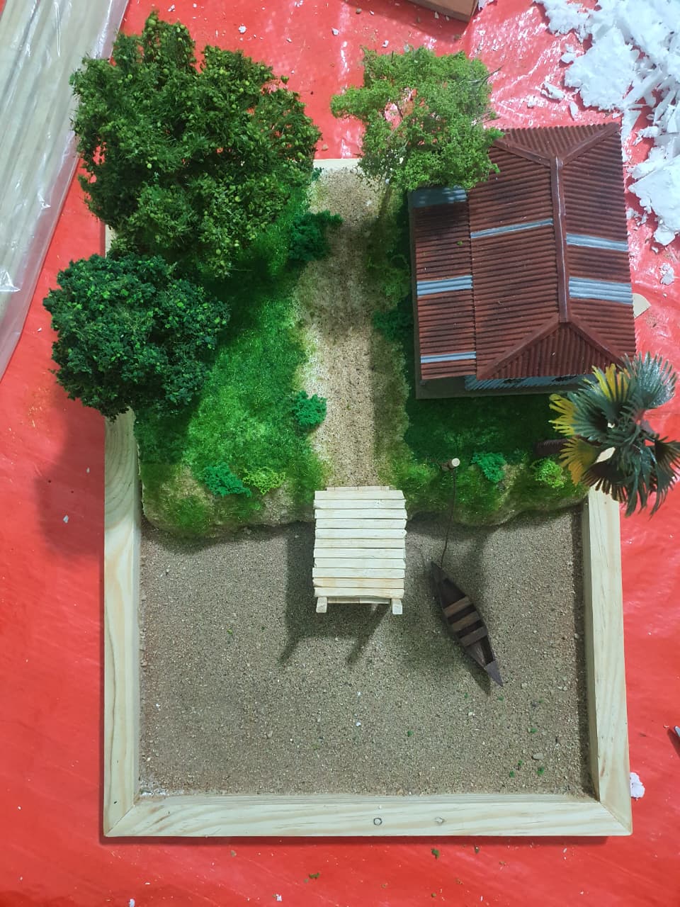 এই মিনিয়েচার গ্রাম মডেল তৈরিতে ব্যবহৃত উপকরণসমূহ—